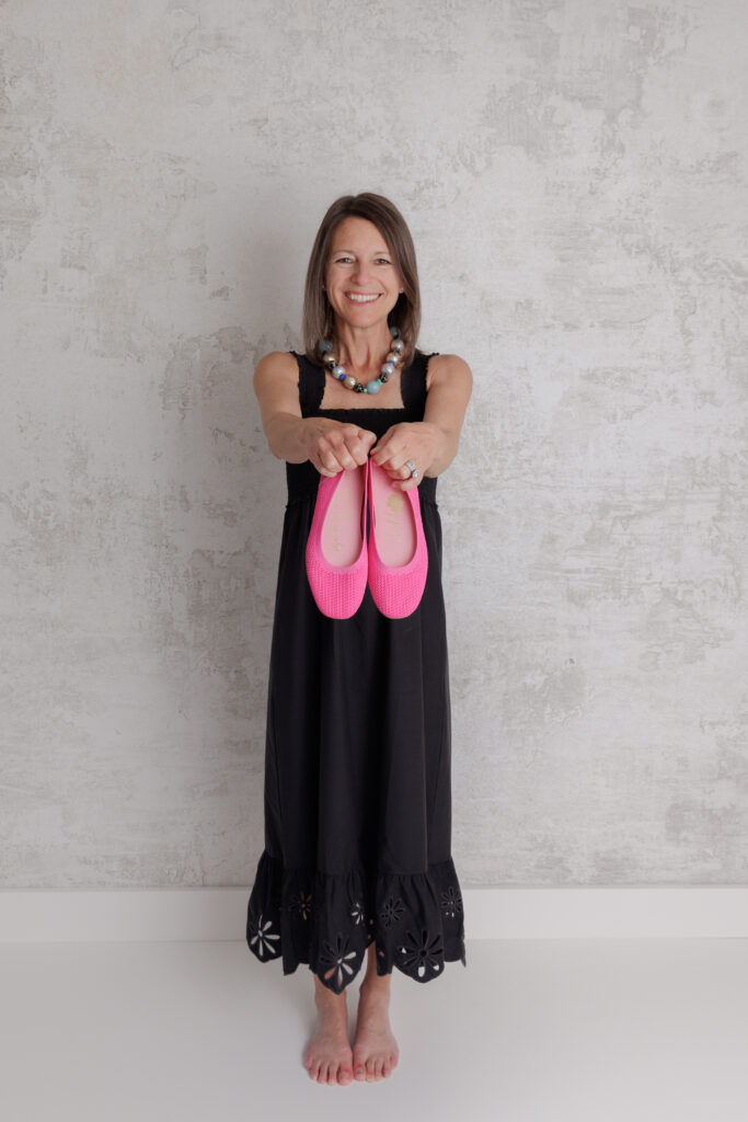Feeling painfully defeated, I had to dig deep. I decided that I was going to wear my bright pink ballet flats when I walked into the powerful, overwhelming, and sterile hospital. I needed that dose of bright color to help me fight through a really dark time. The pink color lifted my spirits and could always spark a conversation with other patients, my nurses, and doctors. It connected us especially my young girls, who wanted to wear a pair on the days I had treatment too. Those shoes gave me the feeling of bravery and courage and reminded me that I could power through whatever was going to come my way, bald head & all!